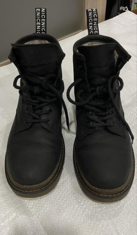 Теплые ботинки изготовлены клее-прошивным методом крепления подошвы, из натуральной кожи нубук, на натуральном меху (набитая овчина). Черного цвета. В отличном состоянии. Размер 35. Длина стельки 22.5 см. Легкая, комфортная подошва не скользит, обладает высокой стойкостью к перепаду температур. Удобная колодка.