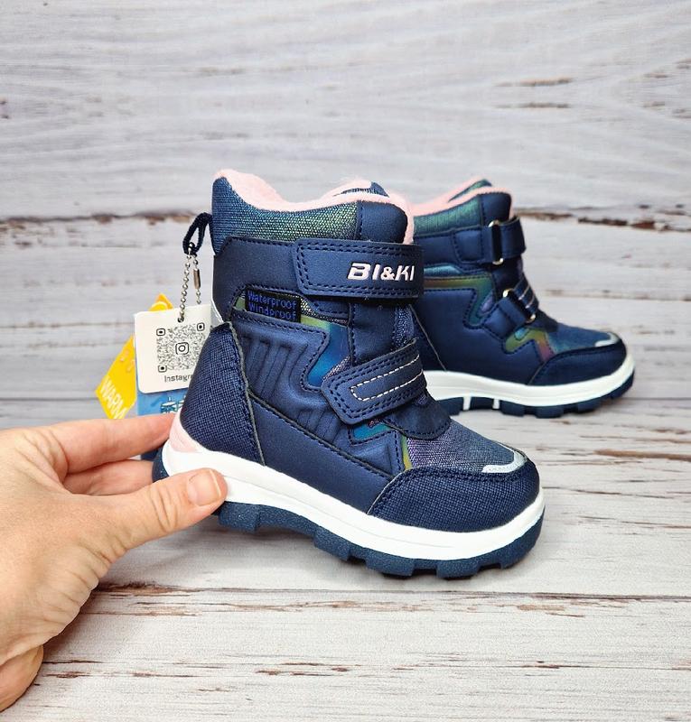🩶Зимові черевики фірми Tom.m Сезон: зима Колір: синій Матеріал внутрішній: хутро змішаний склад 60 % овчина Матеріал зовнішній: щільна якісна еко шкіра. Зимова протекторна підошва, що не буде ковзати. Стильні та неймовірно яскраві чоботи, за вагою легкі, м'які. Дуже стильно виглядають на ніжці Чоботи чудово фіксуються на ніжці завдяки двум надійним липучкам. Температурний режим до -25°С Розміри з 23 по 28 по устілці повністю: 23р. по устілці 15,0 см 24р. по устілці 15,5 см 25р. по устілці 16,3 см 26р. по устілці 17,0 см 27р. по устілці 17,5 см 28р. по устілці 18,2 см