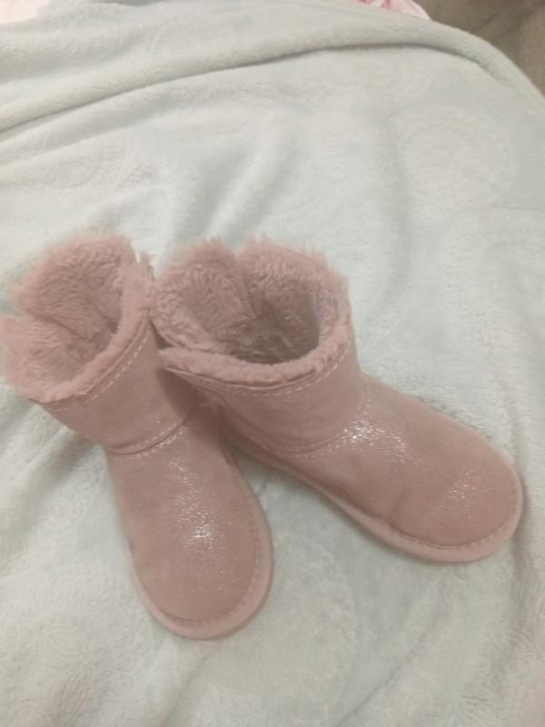 Уггі дитячі на штучному хутрі. Колір пудра з напиленням під срібло. На п'яточці бантик з атласної стрічки. Стан ідеальний. Bubble gummers.