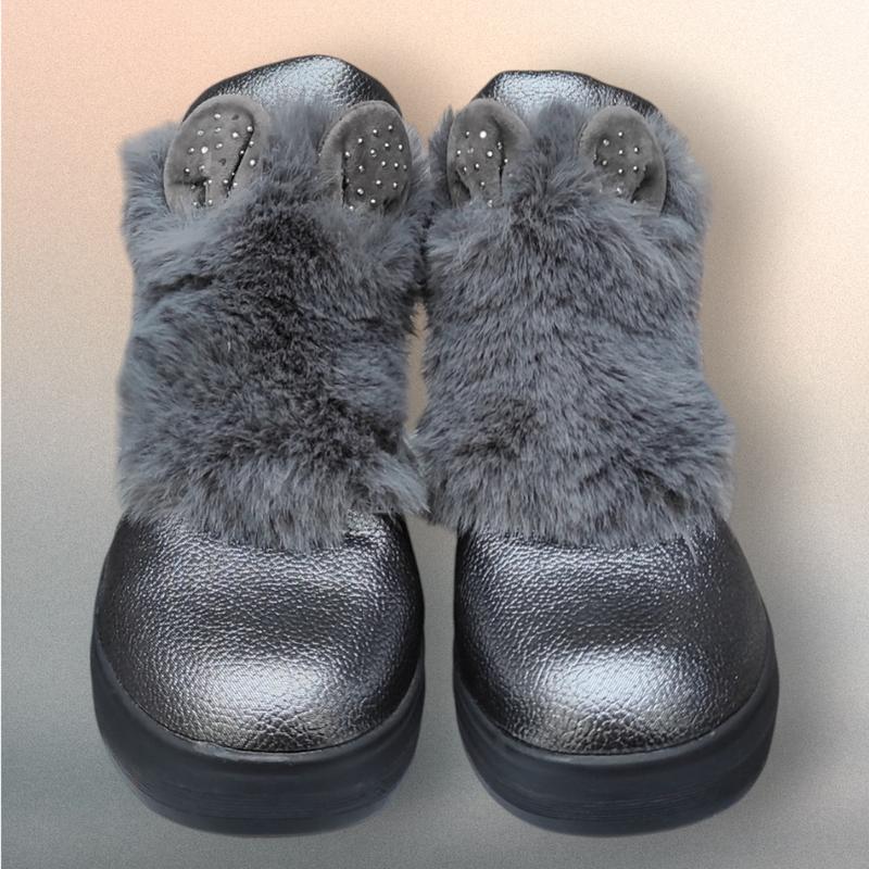 Дитячі євро зимові черевики, вуги сірі для дівчинки з хутром зайці дві змійки