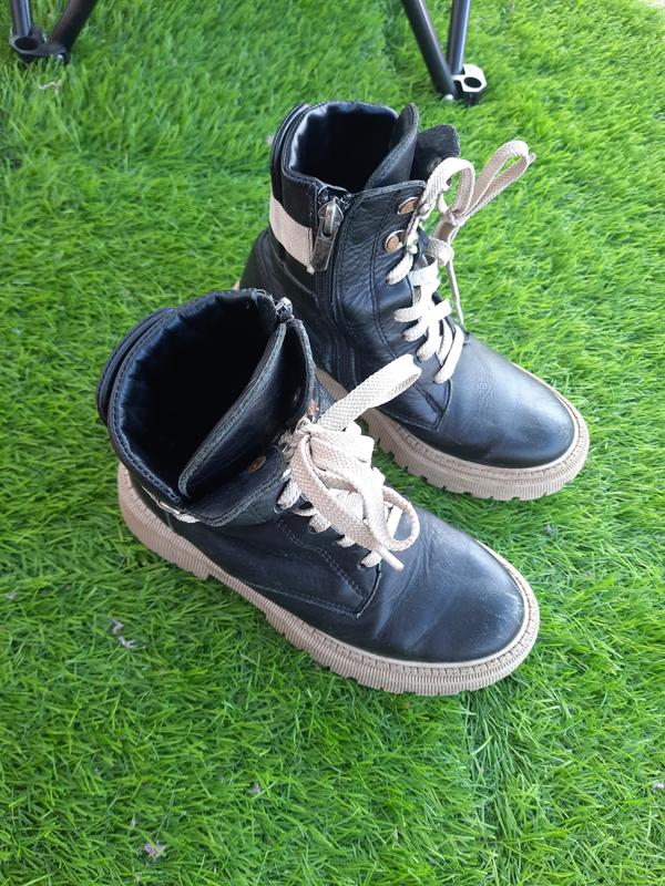 Теплі зручні шкіряні черевички, після 1 сезону, мають потертості, на фото без крему показала. Ціна нових 2450 грн, відаю за 450 грн. Розмір 34 -22 см