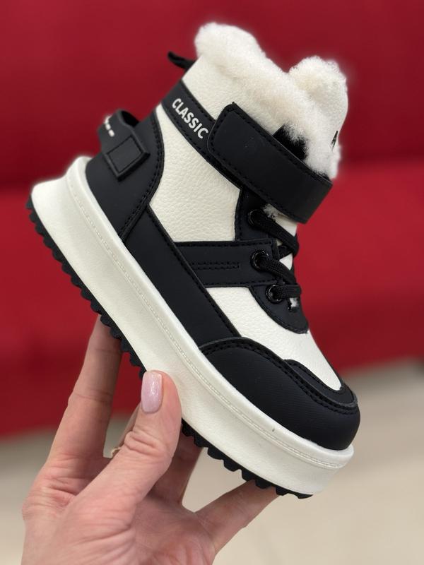 Зимние теплые ботинки от производителя Tom.m для маленьких модниц. Материал верха - экокожа, водоотталкивающие материалы Материал внутри - утепленные овчинкой (60%) Для комфортного обувания сбоку молния. Жесткий задник. Размеры в наличии: 27, 28, 29, 30, 31, 32 Размер 27 - 17 см Размер 28 - 18 см Размер 29 - 18,5 см Размер 30 -19 см Размер 31 - 20 см Размер 32 - 20,5 см