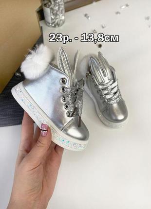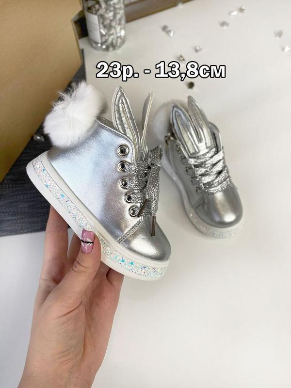 Стильные серебристые ботинки. Фиксируются шнуровкой. Сбоку на молнии. Внутри текстиль. Стелька кожаная с супинатором. Распродажа на последний размер. 23р. - 13,8см (2шт.) Измерение сделано внутри по стельке лично мной, погрешность 1-2мм допустима.