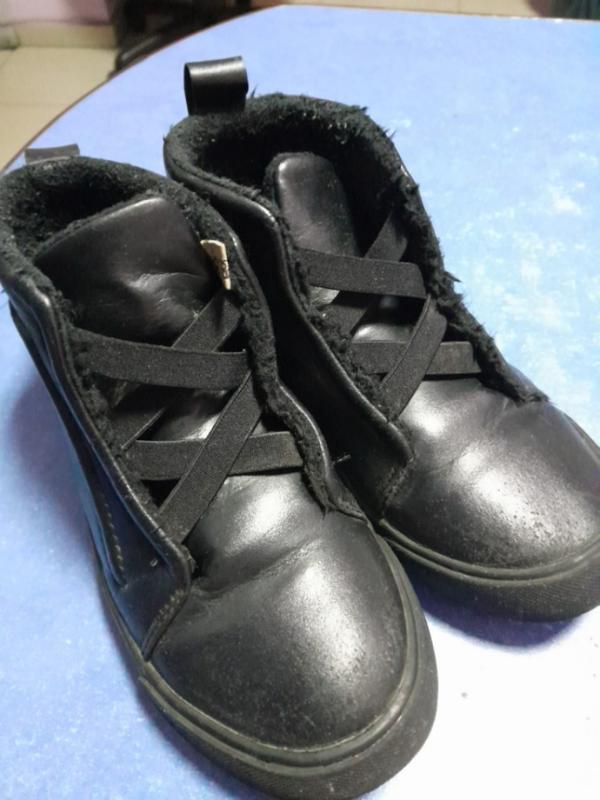 Мягесенька екошкіра, утеплені подвійним флісом, підошва лита,.без замків,є ньюанси:фото8, 9 По бірці 29йрозмір ,по стельці 19-19,5см,важко виміряти
