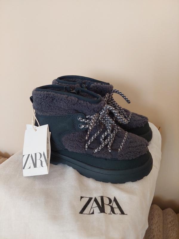 Ботинки zara. оригинал. 28 р. натуральная кожа с искусственным мехом. стильные, удобные сбоку замок