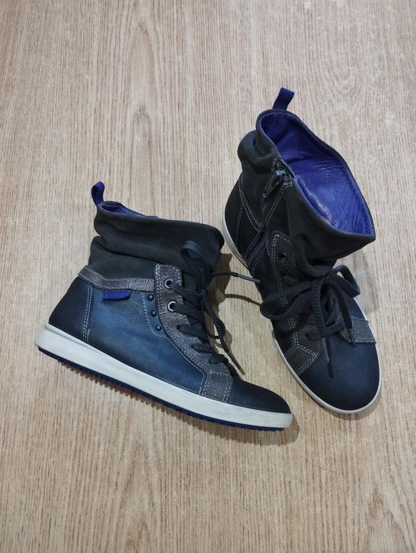 Демісезонні шкіряні черевички Ecco на блискавці та шнурівці (для регулювання повноти та підйому), натуральна шкіра + замш, всередині м'яка шкіра. Колір сірувато-синій. Розмір 33, повна довжина устілки 21,5 см. Відмінні черевики, все ціле, міцне, легке б/в, без зауважень. Будь ласка, дивіться фото, їх робили для вас і вони є частиною опису товару. Дивіться також інші мої оголошення, є ще багато цікавого для всієї родини! ----------------------------------------------------------------------------- Доставка (докладніше про способи доставки дивіться у розділі "Про мене") 3194