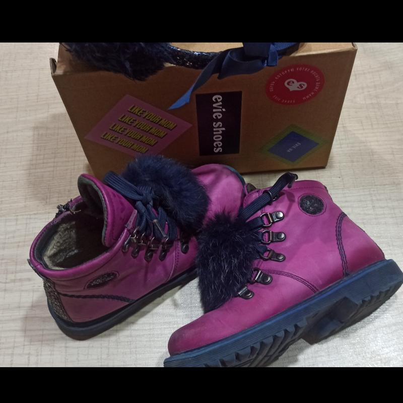 Отличные ботинки от производителя Evie Shoes, постоянно приобретаем обувь этого производителя – они просто великолепны! Модный дизайн, натуральные материалы, удобное. верх натуральных нубук, середина натуральный мех, качественные, будете еще долго носить! Замеры стельки на фото. Пушистый декор можно снять, наушники в подарок!