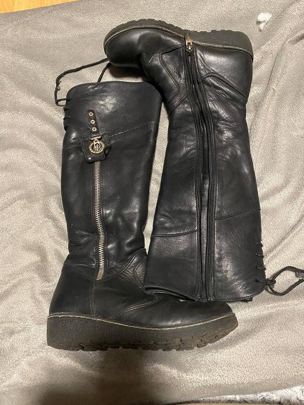 Детские теплые ботинки до колена норманы, в хорошем состоянии, на носках немного есть потертости, которые легко закрашиваются специальной краской. Подкладка цигейка, реально теплая, по словам предыдущей обладательницы - невероятно комфортные и помогают осуществлять мечты. С осени цена на изделие вырастет.
