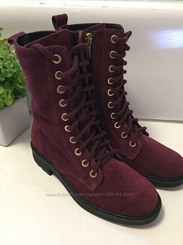 Зовні якісна натуральна замша винного кольору Усередині текстиль фліс Висота 22 см 3/35.5 за устілкою 23 см