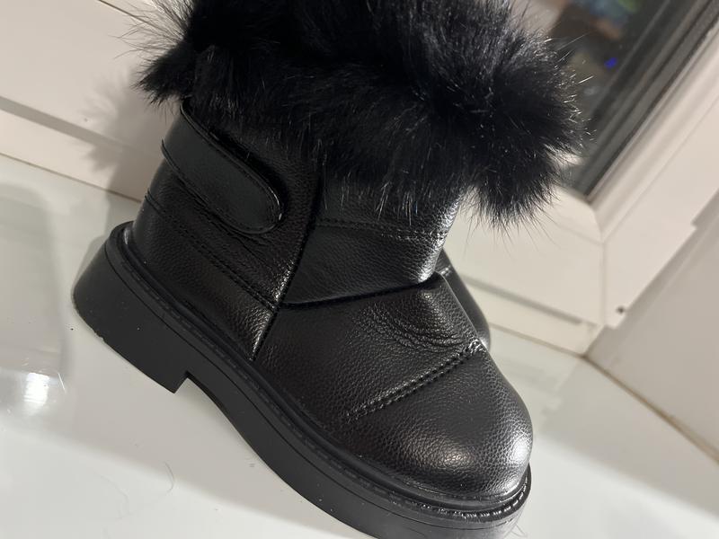 Стильні чобітки. Еко шкіра. Застібка: липучка позаду. Утеплені штучним хутром. Розмір 28 (стєлька 16,5, але краще на 16 см