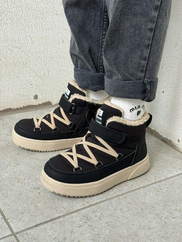 ЗИМА 2026 Модель унисекс, подойдет как мальчику так и девочке Снаружи качественная эко-кожа с комбинацией материала 💦 Waterproof Не пропускают влагу и холод. Фиксация липучкой Сбоку есть молния Утепленные мехом (65% натур) Стелька также теплая, есть супинато Рассчитаны до -30С 27 размер 16,7 см 28 размер 17,3 см 29 размер 18 см 2 пары 30 размер 18,8 см 2 пары 31 размер 19,5 см 32 размер 20 см