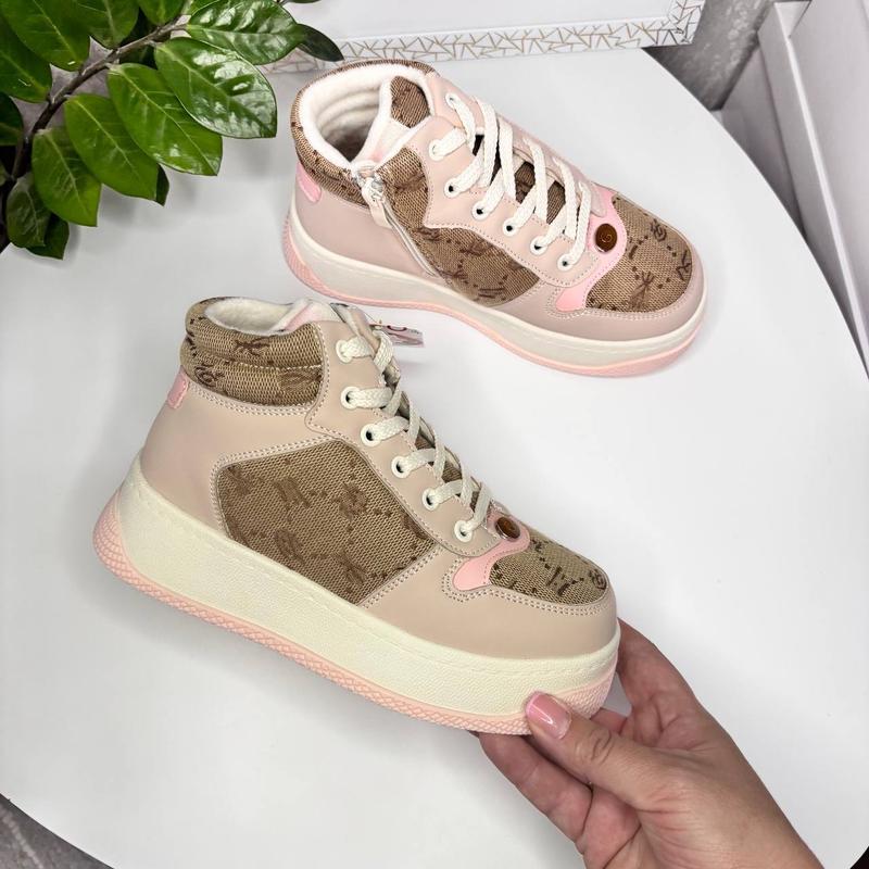 Ззовні еко шкіра та водонепроникний взуттевий текстиль Утеплені мʼякеньким плюшем Шкіряна устілка з супінатором Боковий замочок, робочі шнурки Розмір 32 - 20,8 см 34 - 22,4 см