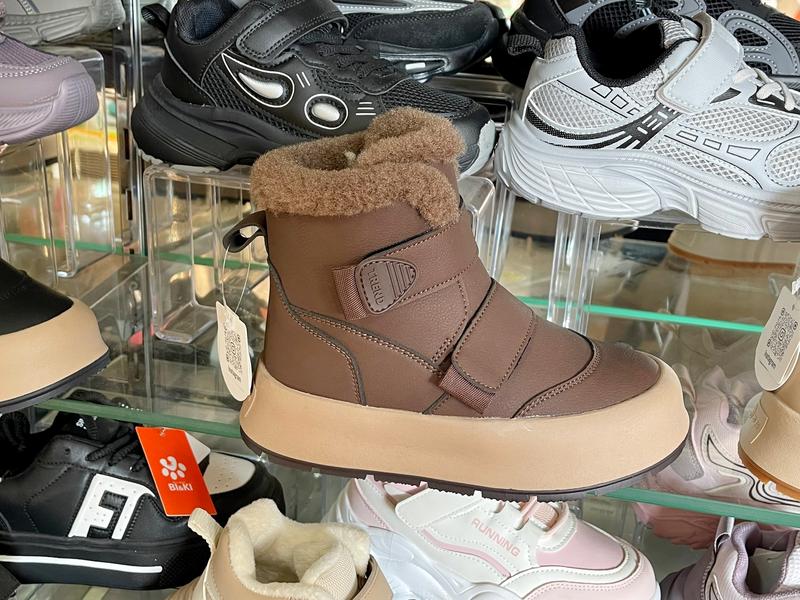 NEW COLLECTION tm Tom.m Водонепроникний матеріал зверху, якісна еко шкіра Фіксація двома липучками , на масивній підошві в стильному дизайні Всередині густе тепле хутро ( натуральна овчина 60%). 32 розмір 20.3 см 33 розмір 21 см 34 розмір 21.7 см 35 розмір 22.3 см 36 розмір 23 см 37 розмір 23.7 см Наявність розмірів уточнюйте будь ласка