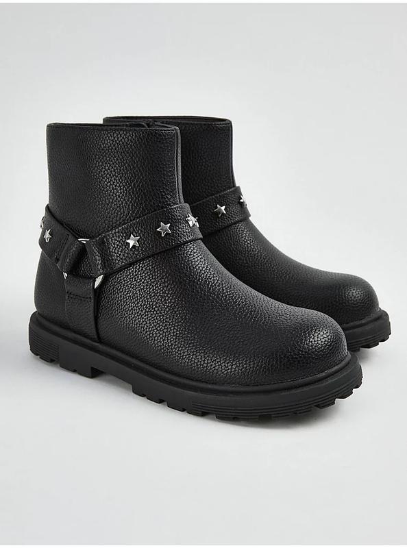 •Верх під шкіру • Застібка на блискавку збоку • Деталі у вигляді зірок • Ремінці з пряжками • Міцна підошва Довжина устілки 21,5 см