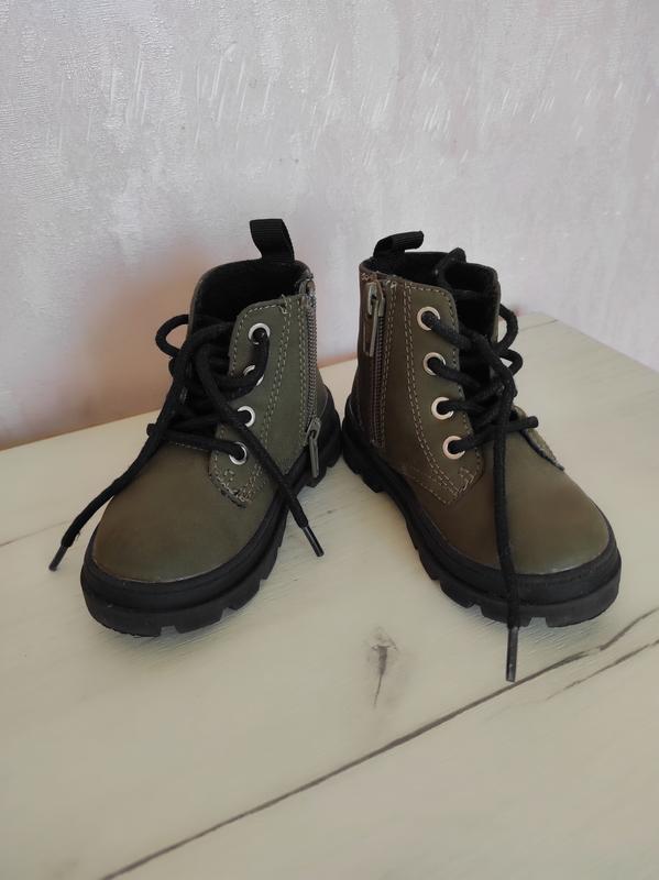 Стильні, комфортні черевики для маленьких модників. Взувалися лічені рази. Покупили в брендовому магазині в Німеччині за 29.99 євро. Ціну уявляють більш ніж адекватну з урахуванням 15% на Шафі. Нюансів немає. Стан ідеальний. Дуже зручно взувати, тому що є бічна замочка. Усередині є баечка.