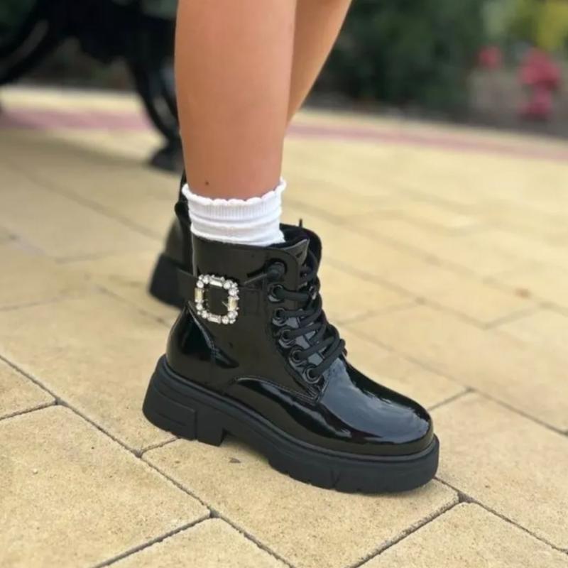 Ботинки детские деми черные лаковые с пряжкой для девочки,чобитки, ботинки, с супинатором,...