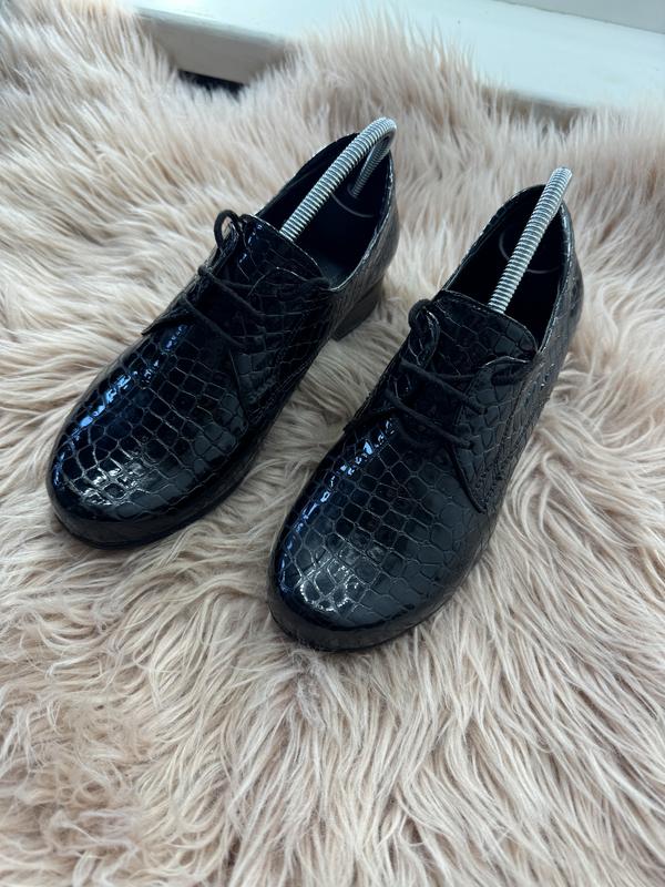 Черевики для дівчинки, можливо в школу. Натуральна лакована шкіра, в середині також зі шкіри , шнурівка. Дуже зручні і в гарному стані