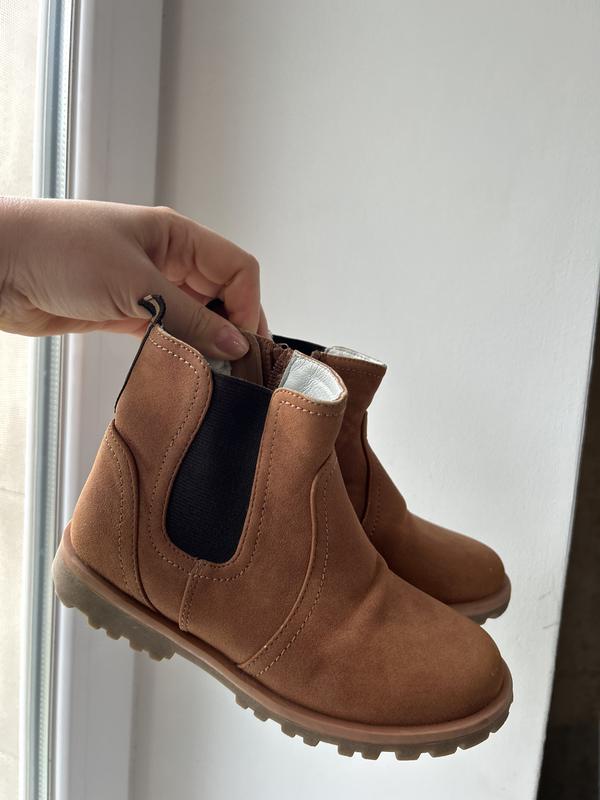 Якісні легенькі Челсі для дівчинки 29 р (19 см довжина в середині). Схоже на штучну замшу, але дуже якісні, спершу я подумала, що справжня замша. Трішки стерті передніки, зафарбовувати не пробувала.