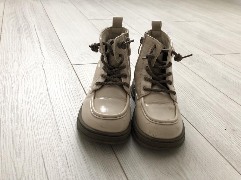Черевики 28 розміру, устілка 17 см колір бежевий з чорними вставками в дуже хорошому стані, на осінь та весну)