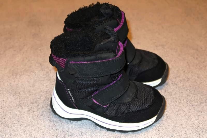Термочеревики Linear оригінал — 23 розмір, за устілкою — 15 см. Підошва — гума. Зовні — якісний штучний нубук + текстиль, прогумований носочок, всередині — утеплені щільним хутром. Мембрана — Waterproof. Водонепроникні, повітропроникні. Дуже легкі, теплі та зручні. Висота черевика — 13,5 см. Чудовий стан. Ціна — 355 грн.