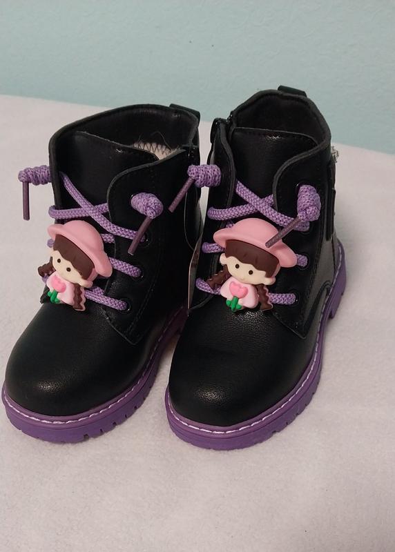 Неймовірно гарні, стильні, милі та теплі. Колір: чорний/фіолетовий. На блискавці + шнурівка. Штучна шкіра. Хутро змішане. Орієнтуйтесь будь ласка по замірах! Заміри устілки від краю до краю! Заміри: розмір 23 - 14,0см; р.24 - 14,5см; р.25 - 15,0см; р.26 - 16,0см; р.27 - 17,0см; р.28 - 17,5см.