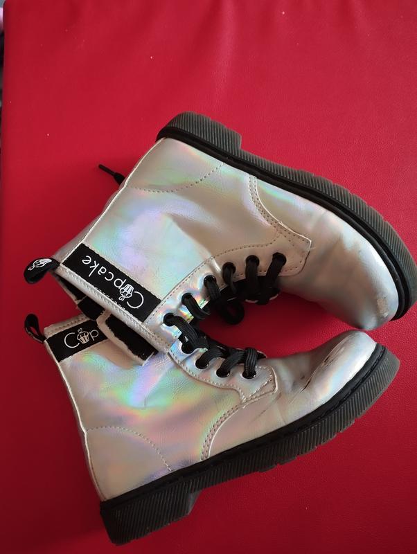 сапоги 29 размер, цвет металлик, лакированные, на шнурках, замок сбоку, полиуретановая подошва, микрофлис, стелька на 18.5-19.0 см