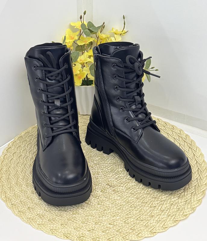 Стильні, теплі та зручні черевики для дівчаток. Матеріал зовні- еко шкіра Всередині утеплені овчиною(60%) комбіновано зі штучним хутром( 40%) Для фіксації присутня шнурівка та боковий замочок. Черевики не важкі, дуже стильно виглядають на ніжці. 33 розмір - 21,4 см 36 розмір -23 см 37 розмір - 24 см 38 розмір - 24,5 см
