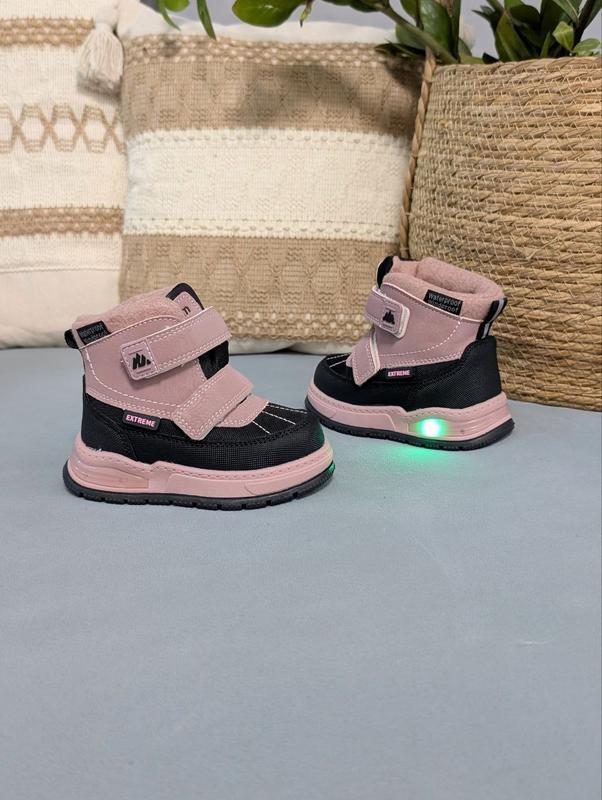 Стильні термоботіночки для дівчаток від ТМ Tom.M ✨ Тепло, комфорт і стиль — усе, що потрібно для зимових пригод ❄️ 🔹 Верх: екошкіра + водонепроникний термоматеріал — не бояться снігу та вологи 🔹 Всередині: густе тепле хутро (60% натуральна овчина) — ніжки завжди в теплі 🧸 🔹 Фіксація: 2 зручні липучки — легко взувати навіть найменшим 🔹 LED-підсвітка — яскравий акцент, який точно сподобається діткам 💡 🔹 Дуже легкі та зручні — створені для активних прогулянок 📏 Розміри / устілка: 22 — 14,1 см 23 — 14,7 см 24 — 15,4 см 25 — 16 см 26 — 16,7 см 27 — 17,4 см