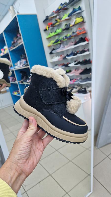 Термо черевики / термо чобітки/ сноубутси фірми Tom.m Сезон: зима Колір: чорний Матеріал внутрішній: хутро змішаний склад 60 % овчина Матеріал зовнішній: штучна шкіра Застібка: шнурівка/блискавка Зимова протекторна підошва з термопластичної резини, що не буде ковзати. Розміри з 28 по 35 по устілці повністю: 28р. по устілці 18,0 см (в) 29р. по устілці 18,5 см 30р. по устілці 19,5 см 31р. по устілці 20,0 см 32р. по устілці 20,7 см 33р. по устілці 21,5 см 34р. по устілці 22,0 см 35р. по устілці 22,5 см
