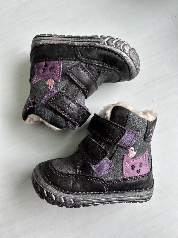 Зимові шкіряні ботінки для дівчинки , всередині овчина. Не слизькі, підошва мʼяка, прошита і проклеяна 19 розмір-12 см по устілці 20-13 см .