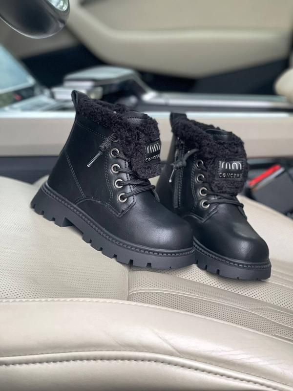 Черевички 120, р.22,23,24,25,26,27,30, плотна еко-шкіра+хутро, чорний