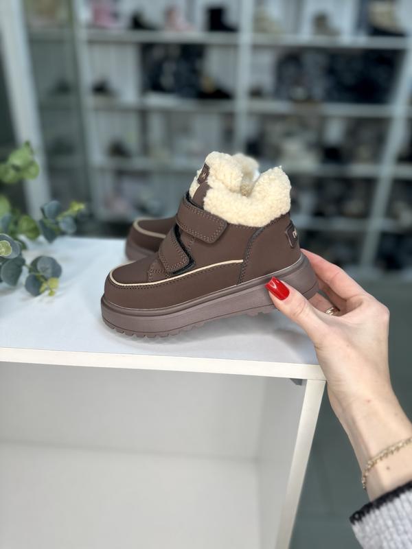 Зимові черевички від Tom.M🤍 Верх - екошкіра у шоколадному кольорі🤎 Всередині утеплені овчиною по всій довжині👌 Фіксація двома липучками по обʼєму ✅ Підошва добре витримує морози і негоду 🌧️ Зручні для ніжок 👣 Розмір: 29р - 18,5 см 📏 Заміри виконані вручну, можлива похибка 1-2 мм. 🚙 Відправка протягом 1-2 робочих днів Укр та Новою поштою. 💳 Наложений платіж по передоплаті 150 грн