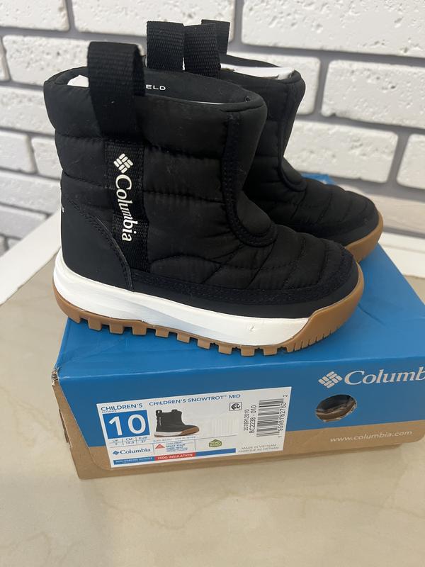 Columbia, чобітки , черевики, дутики- Дитячі водостійкі з теплозберігаючою підкладкою, розмір 27 ( US 10). Замовляла з Америки, після однієї дитини, стан дуже-дуже хороший. Замовила на цей рік такі самі, дуже нам сподобались. По устілці орієнтуйтесь на фото. -Omni-Shield™ відштовхує вологу і протистоїть плямам, запобігаючи всмоктуванню рідин у швидковисихаючу пряжу. -Легка, але тепла ізоляція 200 г для холодних умов. -Тепловідбиваюча дихаюча підкладка Omni-Heat™ зберігає тепло за допомогою срібних точок, які відбивають тепло тіла, тому ви залишаєтеся теплими і комфортними, коли температура падає.
