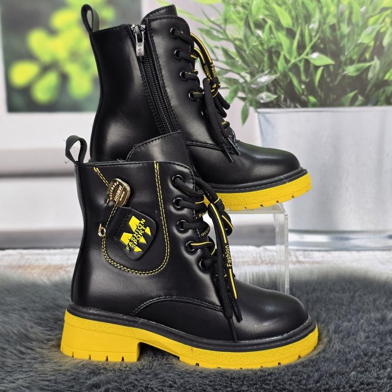 Ботинки детские для девочки y.top черные с желтым демисезонные 5994
