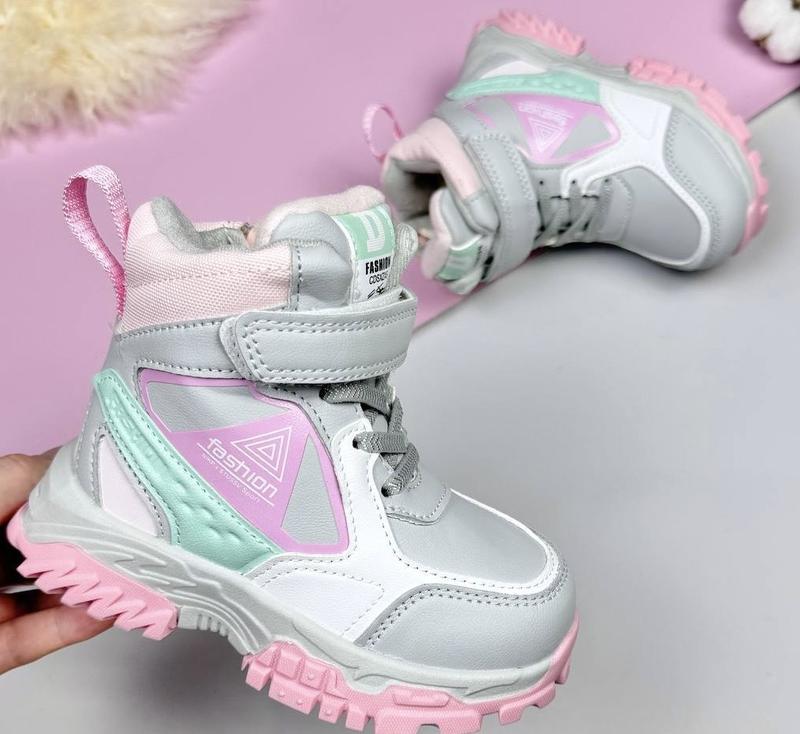 Утеплені овчиною. Верх - еко шкіра. Застібка - замочок збоку та липучка . Підошва - ПВХ. Устілка - овчинка. Заміри: 23 - 15 24 - 15,7 25 - 16,5 26 - 17 28 - 18,5