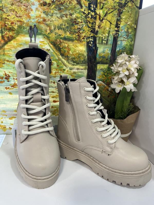 Осені черевики у бежевому кольорі с блискавкою та шнурками, чудово сидять на нозі. Штучна шкіра. Розмір 32-35 32-21 см 33-21,5 см 34-22 см 35-22,5 см