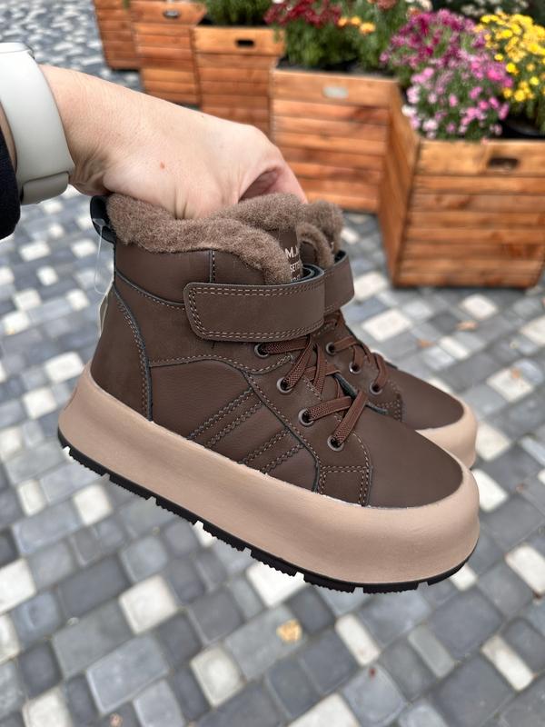 NEW COLLECTION tm Tom.m Водонепроницаемый материал сверху, качественная эко кожа! Фиксация липучка и шнуровка-резинка на массивной подошве в стильном дизайне Внутри густой теплый мех Модель очень удобная и легкая! В ограниченном количестве! 34р - 21.7 см /2 37р - 23.7 см ЦИНА 1480 грн