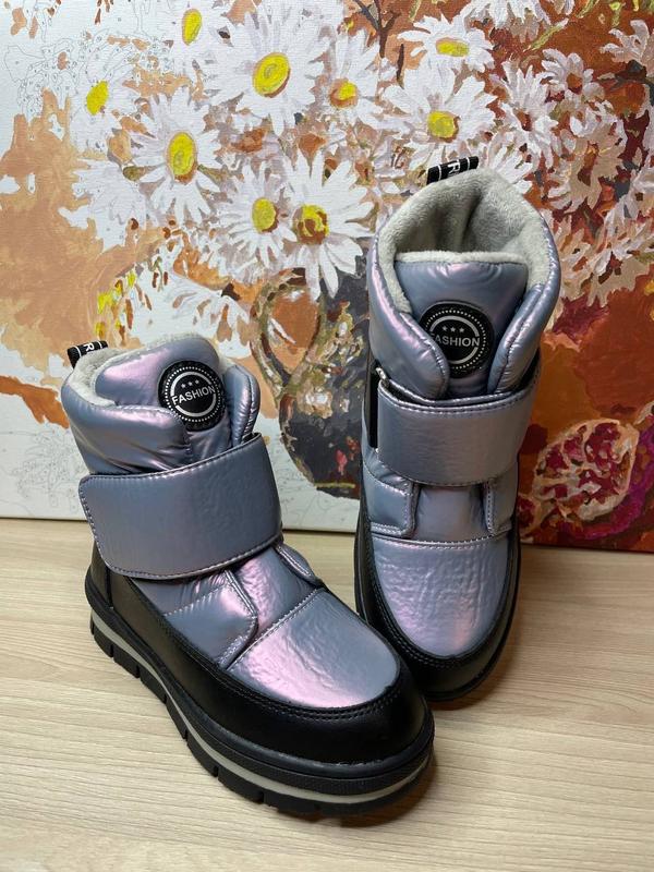❄️Неймовірно стильна Зимова новинка для дівчаток 🥰 💜Верх якісна еко шкіра та водонепроникний матеріал ❄️Всередині густе, тепле хутро натуральна овчина 60%🐏 💜Мають липучку ❄️Дуже легесенькі Якість бомбезна 💜Рекомендуємо!!!