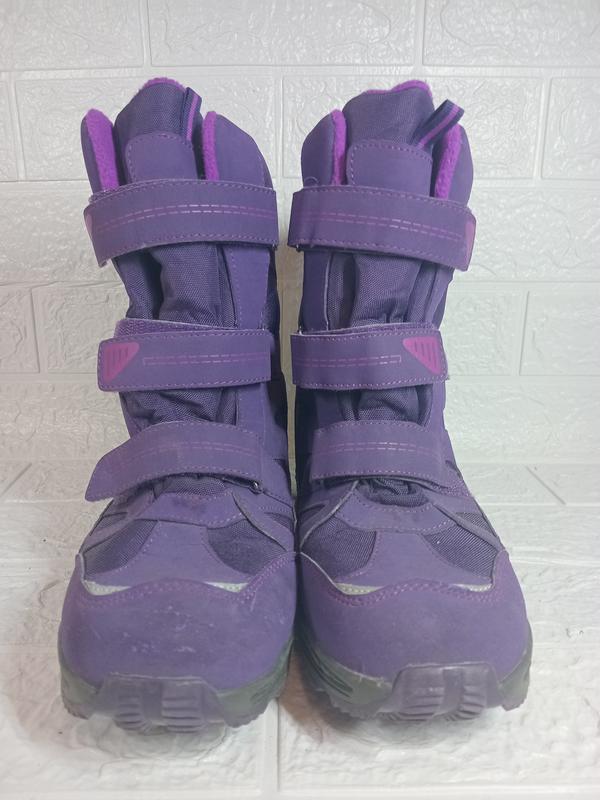 Продам детские зимние ботинки фиолетового цвета на трех дипучках. На технологии Techtex. Теплые, не промокают Размер 39, Длина стельки 24.5см Небольшие царапины на носу.