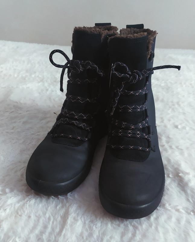 имовые ботинки Ecco с Gore - tex. Верх: кожа. Материал подкладки: искусственный мех. Размер 35, длина стельки -22,5; ширина стельки в самом широком месте -8,5 си Цвет темно синий, нубук, на шнурке и молнии (можно регулировать по ноге) Ботинки в отличном состоянии, без дефектов, носили один сезон (приобретались в разы дороже) Возможна примерка за счет покупателя