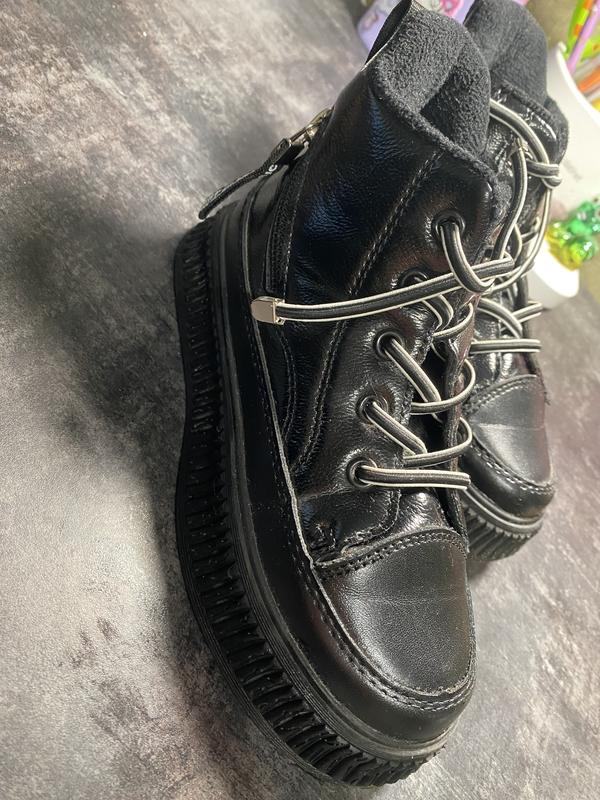 Дитячі сапожки в ідеальному стані , одягли два рази так як прогадали з розміром По устілці 19см Ширина регулюється затяжками , з боку на застібці Еврозима ( більш осінь , тепла зима до -5)