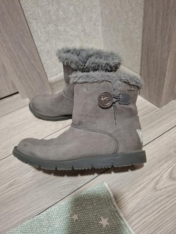 Это серые зимние ботинки бренда S.Oliver с меховой подкладкой. Они имеют синтетический верх и резиновую подошву. Некоторые модели S.Oliver также оснащены мембраной TEX, что делает их водоотталкивающими и дышащими, идеально подходящими для зимней погоды. Эти ботинки подходят для повседневной носки зимой и осенью. По стельке 22 см. Стан идеален.