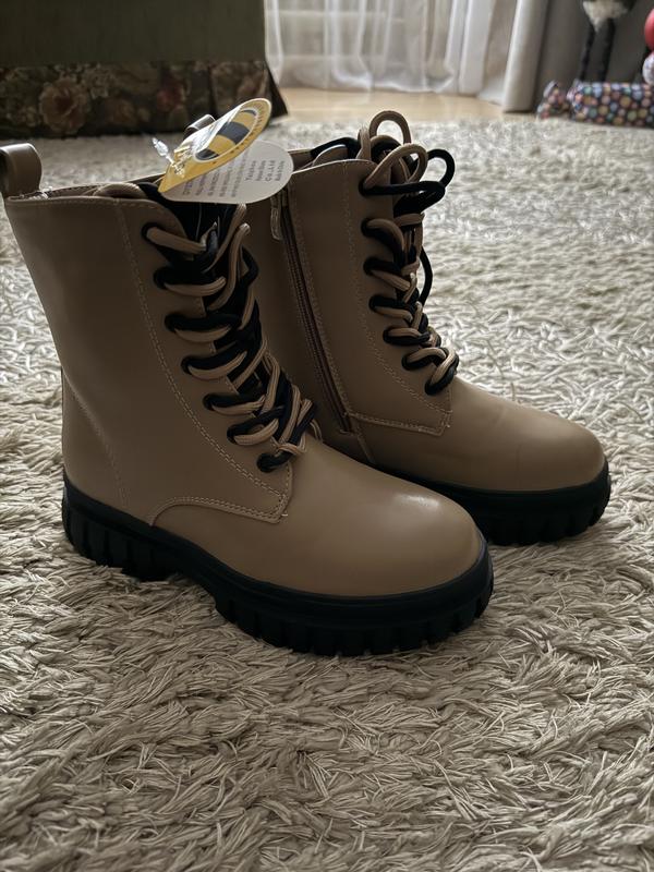 Зимові черевики для дівчинки, 35–36 розмір (нові) Стильні та теплі зимові черевики для дівчинки. 🔹 Розміри: 35 ( устілка 22,5 см) та 36 (23 см) 🔹 Стан: нові, з бірками 🔹 Утеплювач: шерсть — добре зберігає тепло взимку 🔹 Колір: бежевий 🔹 Матеріал верху: якісний, зносостійкий 🔹 Підошва: товста, рельєфна, не ковзає 🔹 Застібка: шнурівка + бокова блискавка — зручно взувати 🔹 Підійдуть для щоденного носіння, школи та прогулянок Гарний варіант на холодну зиму ❄️
