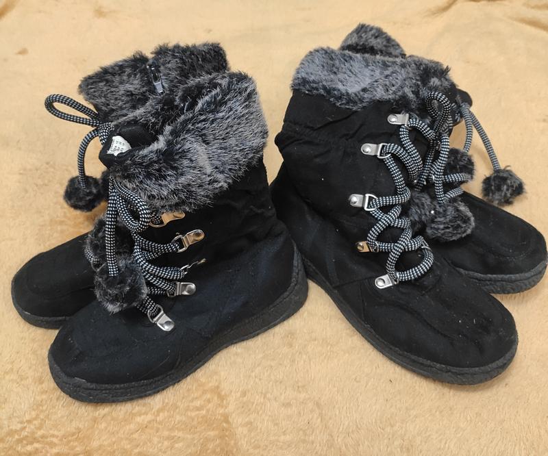 Новенькі дуже гарні термо-черевички европейского бренду Faded Glory, в наявності розмір 30 довжина устілки по заміру 18,5 см та розмір 35 довжина устілки по заміру 22,5 см. Колір -чорний, мають шнурочки і молнію, тепленькі легенькі і дуже зручні.