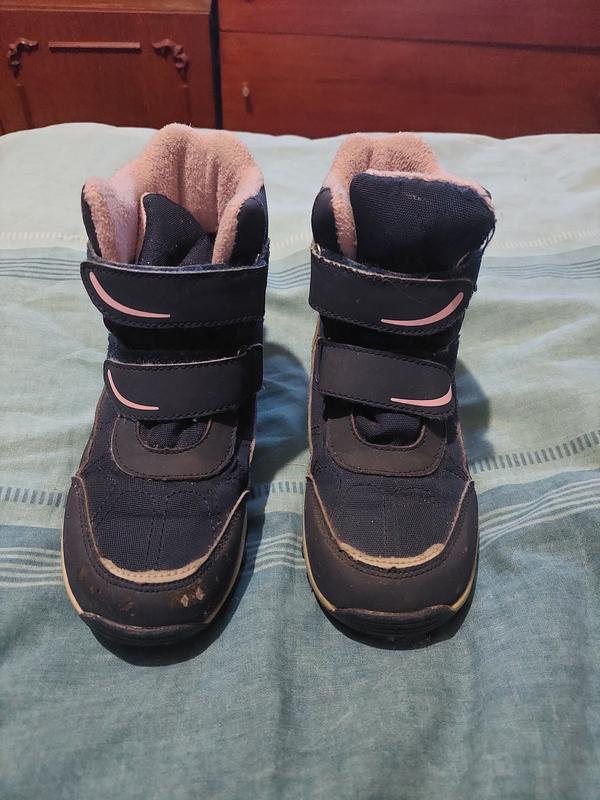зимние ботинки на девочку 30 размер, удобные и теплые. состояние очень хорошее спереди на одном чуточку повреждений, можно закремить