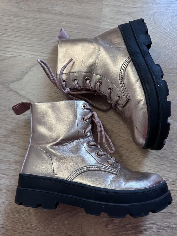 Ботинки утеплені байкою. Перламутрові рожеві, дуже гарно пасували під сукні. Є одна подряпинка незначна, іі майже не видно в носці, на фото показала.