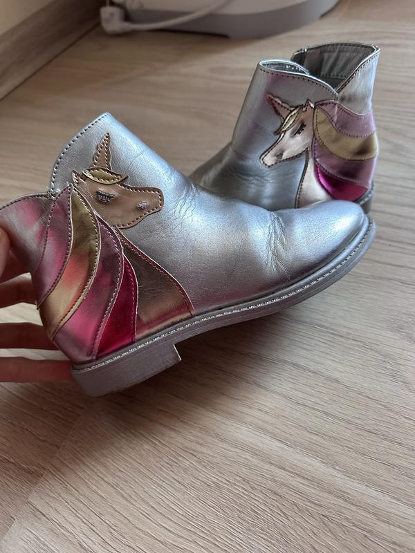 Дуже гарні перламутрові ботинки з єдинорогом. Утеплені синтепоном. На замку.