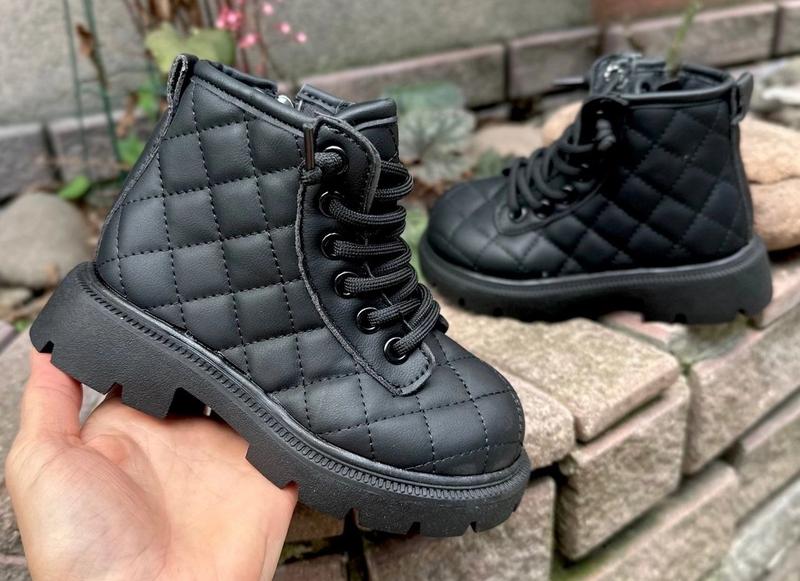 Ці стильні та практичні черевики стануть чудовим вибором для холодної пори року. Виготовлені з високоякісних матеріалів, вони забезпечують надійний захист від холоду, вологи та вітру, а також надають ногам комфорт навіть при тривалому носінні. 🖤: Високоякісна екошкіра зі стьобаним дизайном, яка не тільки виглядає модно, але й захищає від вологи. 🖤: Внутрішня підкладка виконана з м'якого текстильного матеріалу, що зберігає тепло всередині черевиків. 🖤: Гнучка та міцна гумова підошва з вираженим протектором забезпечує надійне зчеплення з поверхнею, запобігаючи ковзанню. 🖤: Черевики оснащені шнурівкою для надійної фіксації на нозі та зручним язичком для легкого одягання. 🖤: Стьобаний дизайн надає черевикам елегантний вигляд 29 (3шт) 28 (1шт) 27 (3шт) 26 (2шт) Заміри по устілці: 34 - 20,5 33 - 19,5 32 - 19 31 - 18,5 30 - 18 29 - 17,5 28 - 17 27 - 16 26 - 15,5