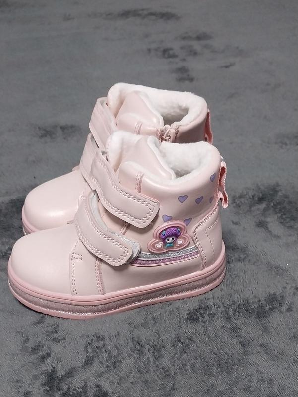 Ніжно рожеві милі демі черевички для маленьких дівчаток. Дуже зручні. Є змійка та дві липучки. Без супінатора. Заміри устілки від краю до краю. Заміри: р.22 - 13,5см; р.23 - 14,0см; р.24 - 14,7см; р.25 - 15,5см; р.26 - 16,2см; р.27 - 16,8см.