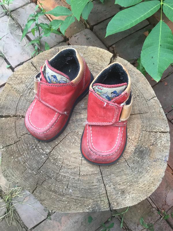 Дитячі шкіряні черевички,20 розмір, на "липучці", рифлена підошва, всередині ортопедична подушечка, м'який задник